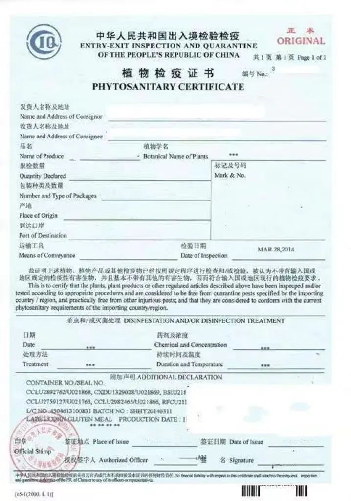 【該批貨物來自注冊加工企業(注冊號***),符合盧旺達甜葉菊輸華植物檢疫要求議定書要求”】。經熏蒸處理的,還應在植物檢疫證書中注明熏蒸處理日期、溫度、濃度和持續時間等處理指標。