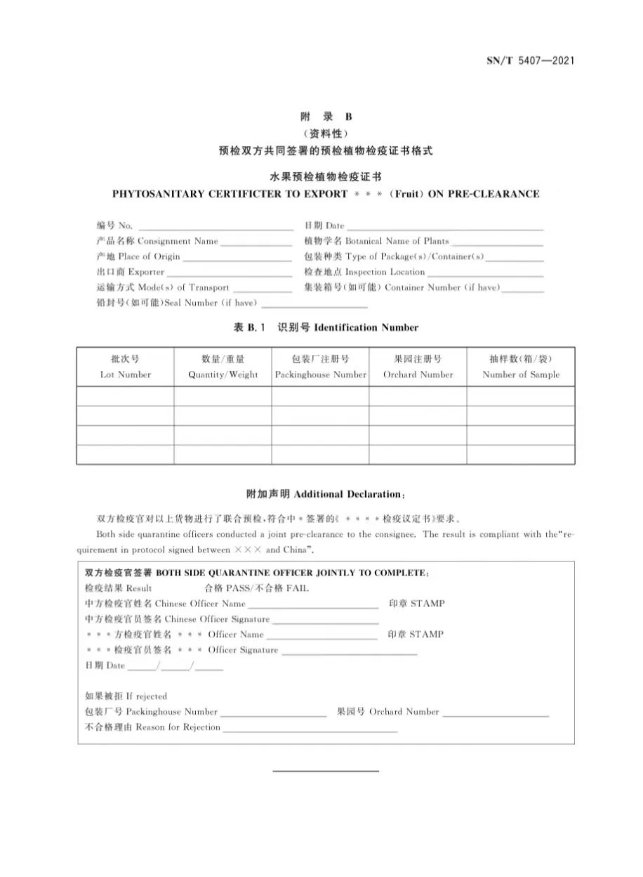 適用于向中國出口水果的產地和產品預檢。