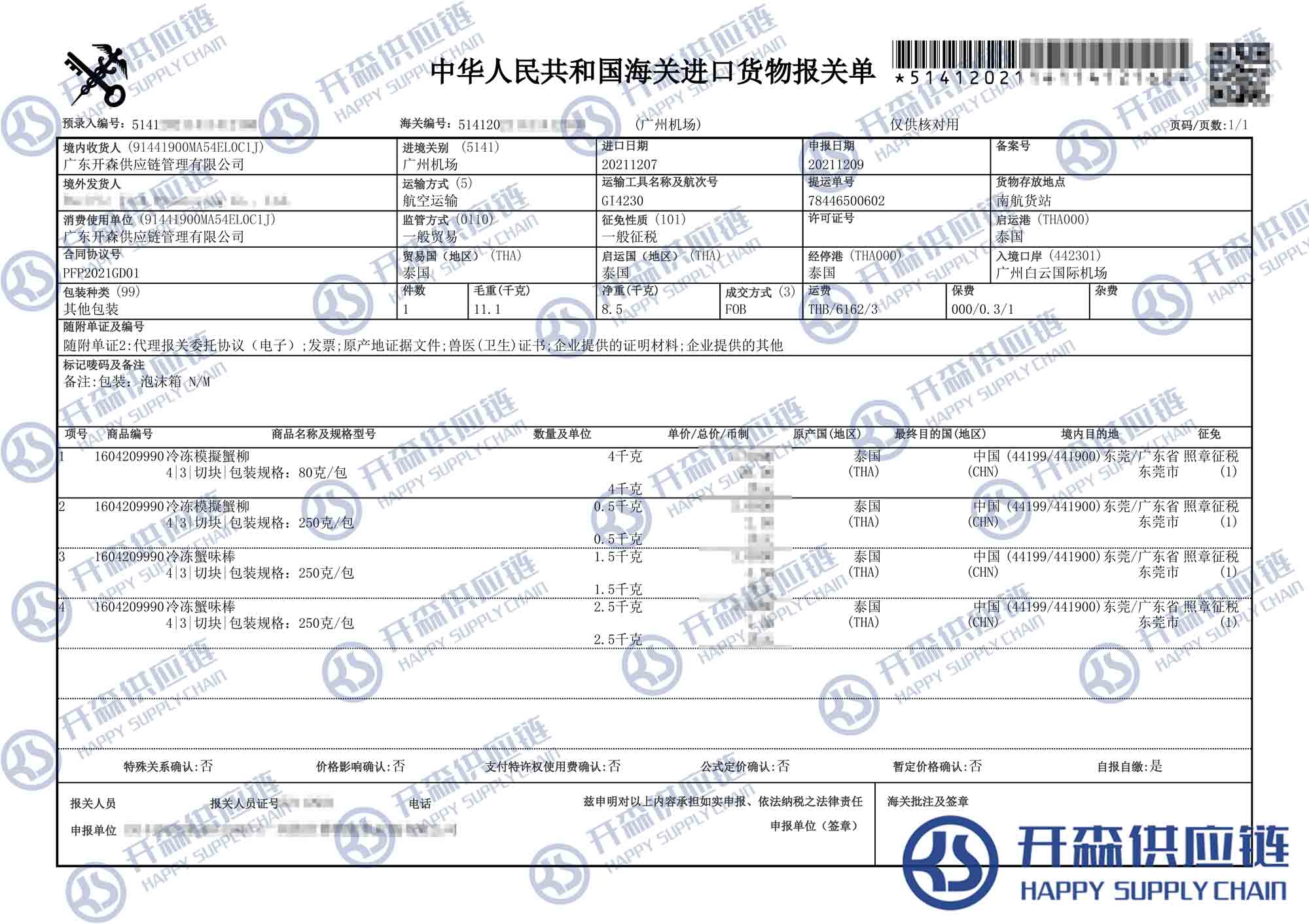 【本文結(jié)語】 上述就是泰國冷凍蟹柳進口報關清關代理【經(jīng)典案例】的全部內(nèi)容,希望能對您有所幫助,如有水產(chǎn)品進口報關上任何疑問及問題可隨時在線聯(lián)系我們或撥打 18002611553,開森供應鏈擁有豐富的水產(chǎn)品進口報關操作經(jīng)驗及案例,10余年進口經(jīng)驗為您所用,各類進口疑難都能為您一一解答及協(xié)助快速處理解決!