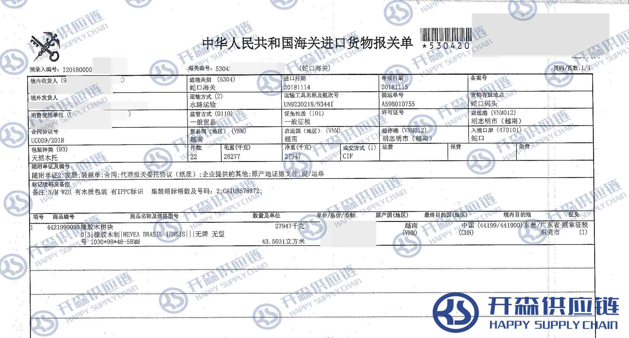 【本文結語】 上述就是越南橡膠木拼塊家具進口報關代理服務【經典案例】的全部內容,希望能對您有所幫助,如有家具進口報關上任何疑問及問題可隨時在線聯(lián)系我們或撥打 18002611553,開森供應鏈擁有豐富的家具進口報關操作經驗及案例,10余年進口經驗為您所用,各類進口疑難都能為您一一解答及協(xié)助快速處理解決!