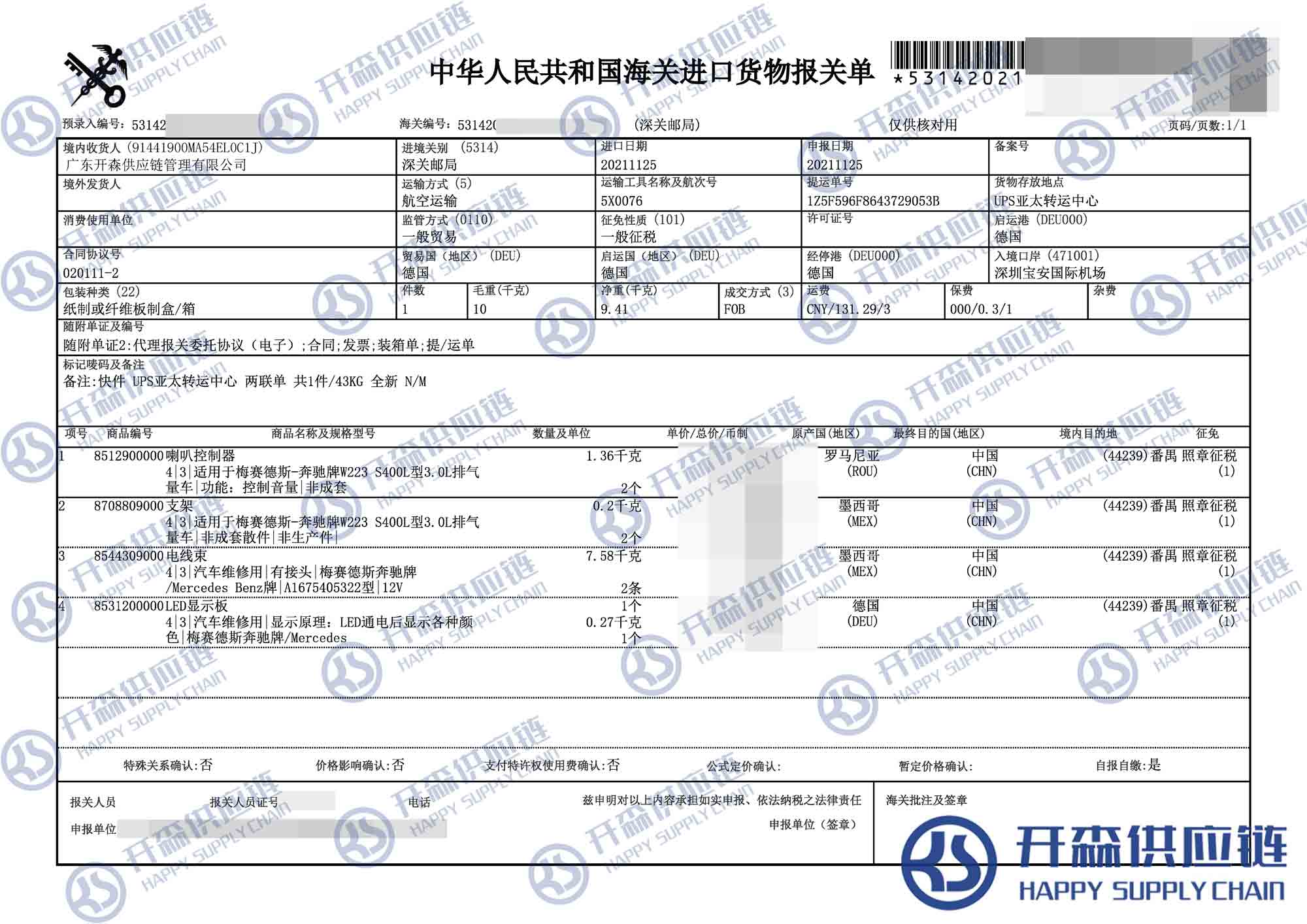 開森供應鏈擁有多種多樣的汽車配件進口渠道與豐富的進口報關案例。我司提供收貨、報檢(商檢)、報關清關、貨物運輸一條龍服務。我們公司的優勢:1、價格優惠;2、安全快速;3、專業與便捷。
