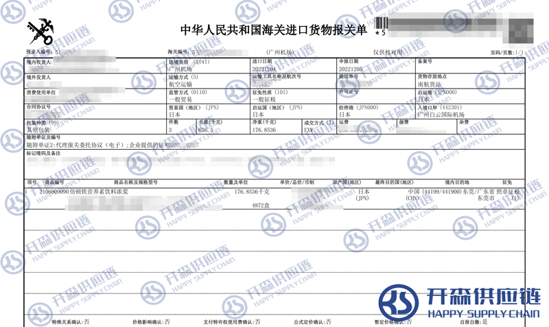 開森進口供應鏈擁有豐富的營養素飲料濃漿進口報關操作經驗及案例,十余年操作經驗及案例可供參考,可按需定制營養素飲料濃漿進口方案,幫助客戶解決進口難題,快速進口清關到港到貨。