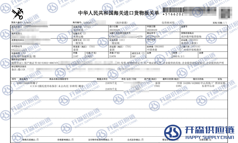 一、泰國鮮椰子進(jìn)口報關(guān)代理案例詳情